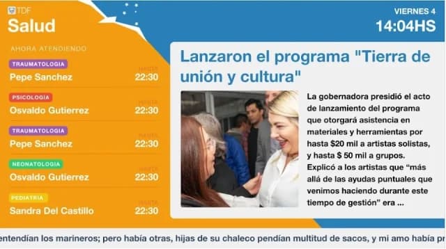 "Salud TV" es una aplicación desarrollada por CasaA pensada especÃficamente para instalarse en televisores y pantallas de consultorios médicos. Esta aplicación ofrece una serie de funcionalidades especialmente diseñadas para este entorno, incluyendo la visualización de noticias de salud, la presentación de los profesionales médicos que trabajan en la clÃnica, y la gestión del orden de llamado de los pacientes.